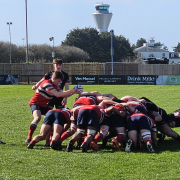 Another heroic defensive set followed. And another. And then another, Dan, Dan, Dan & Dan put in hits that could be heard in neighbouring Channel Islands. Carriers were folded, refolded, and politely returned to sender. Marsh McLeod was latched over rucks like a man guarding the last pint in the clubhouse. Max Dougdale’s brother launched into his now trademark referee appeals, arms outstretched, politely. Rogan, Tommy & Seb were deep in the dark arts. Subtle nudges. The kind of breakdown behaviour that exists in the grey area between genius and “have a word, skipper.” And of course, enter the field Teeny Tiny Bucker T – Josh AA was back in town, with immediate impact.